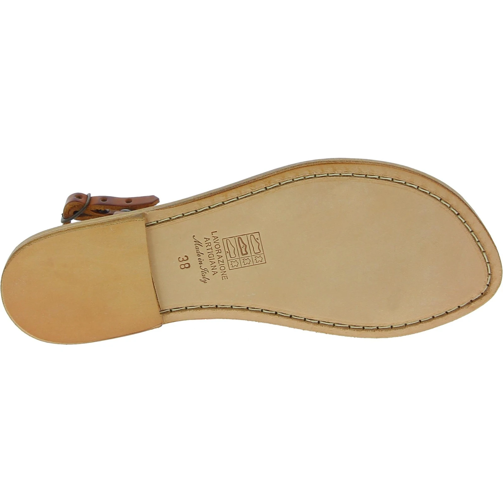 Sandales bas avec lanières de cuir graissée de vachetta avec semelle en cuir naturel (pas coloré) fait main en Italie sans l'aide étrangère ou le travail des enfants, mais par des experts dans la meilleure tradition de l'artisanat.