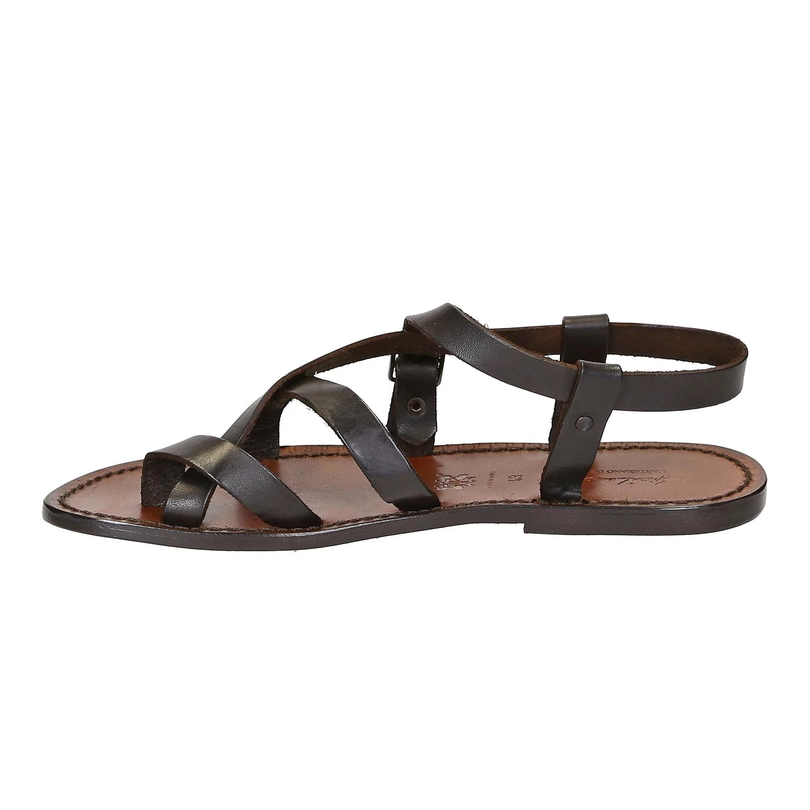 Brun foncé graissés vachetta sandales de homme en cuir avec cuir unique fait main en Italie sans l'aide étrangère ou le travail des enfants, mais par des experts dans la meilleure tradition de l'artisanat.