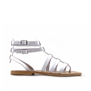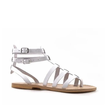 Sandales spartiates pour femme en cuir travaillé à la main blanc
