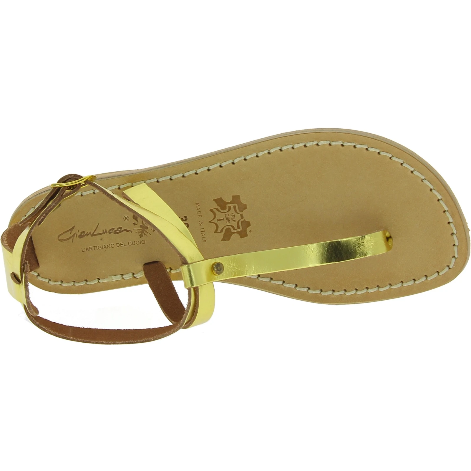 Sandales plates de lanière en jaune en cuir laminé avec cuir unique fait main en Italie sans l'utilisation de main-d’œuvre étrangère ou un enfant, mais par des experts dans la meilleure tradition de l'artisanat.