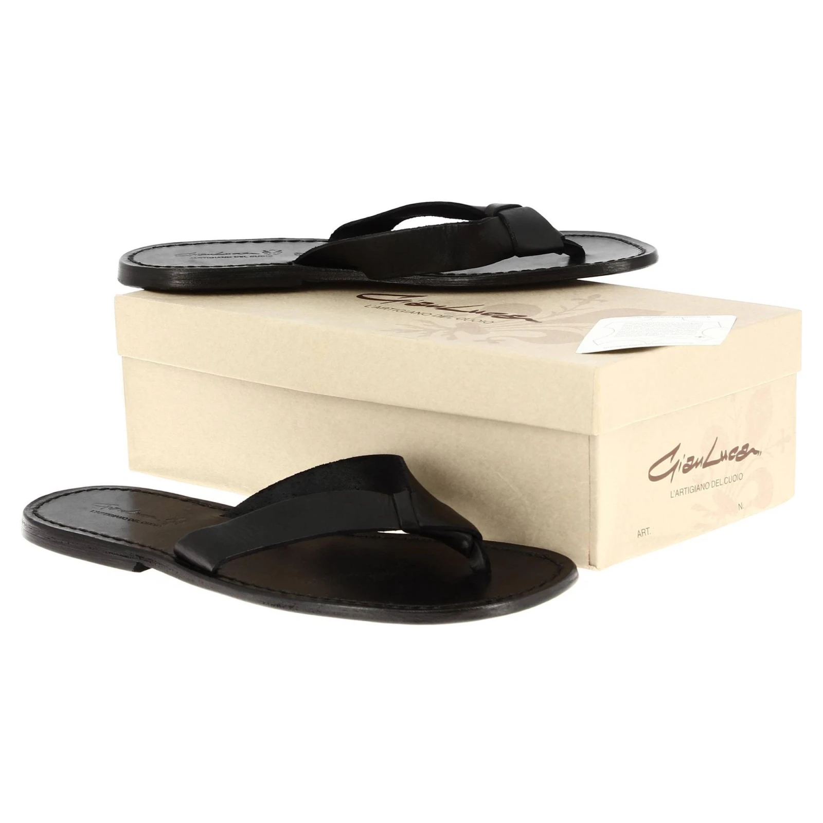 Sandals tong cuir homme noir fait à la main en Italie