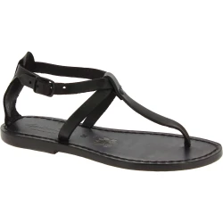 Sandalo infradito da donna in pelle nero artigianali