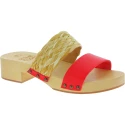 Sabot da donna rosso in legno artigianali con fascia in rafia e pelle