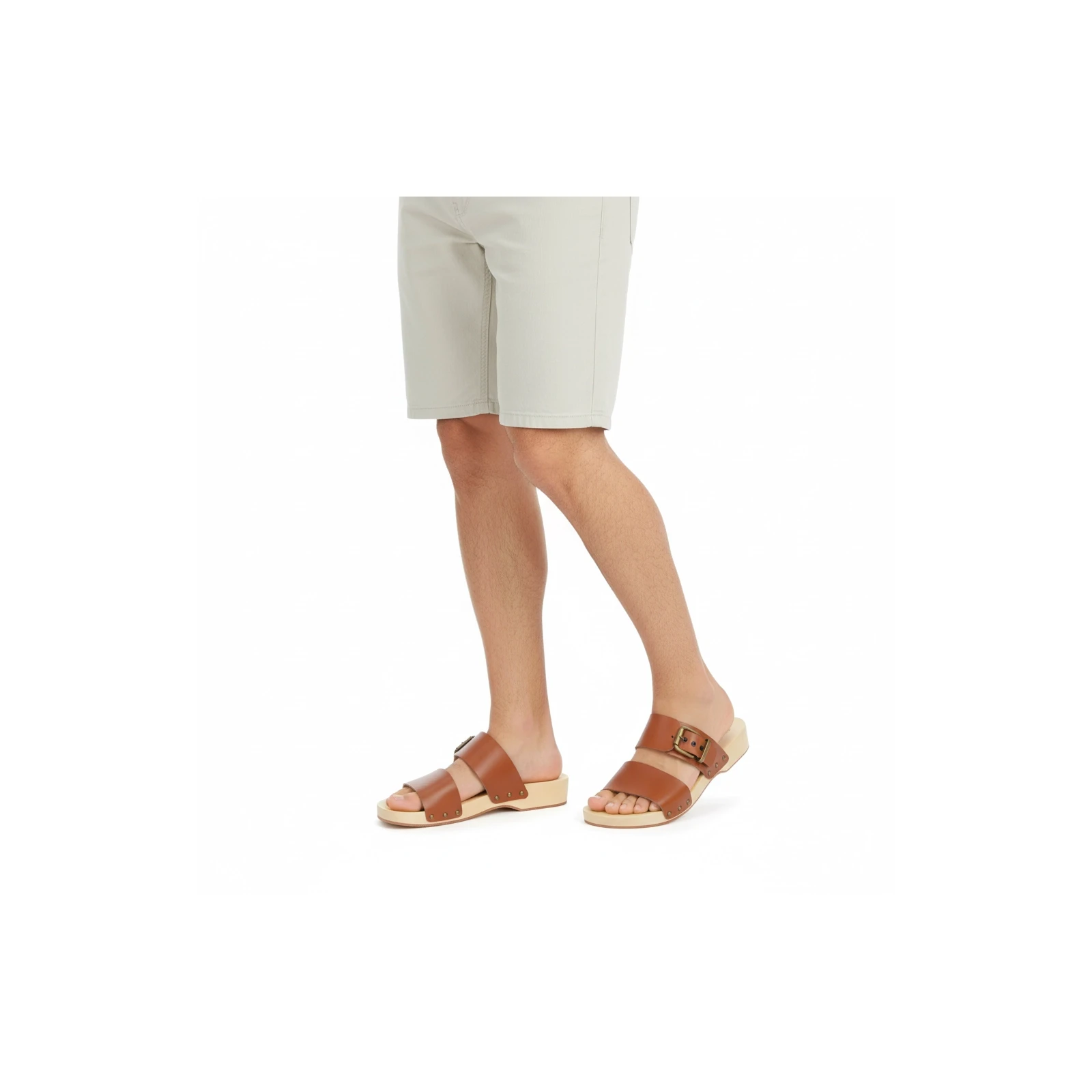 Zoccoli in legno uomo con fascia regolabile in pelle color cuoio